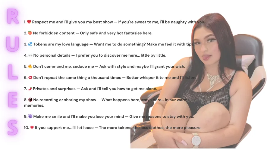 Na pieska, Ahegao, Taniec erotyczny, Klapsy, Camel toe, Ocena kutasa, Sprośne słówka, Striptiz, Poniżenie, Instrukcja walenia konia, Pończochy, Topless, Twerking, Zaglądanie pod spódniczkę, SPANK BOOBS, SPIT TITS, SPREAD PUSSY, DANCE FOR YOU, JUMM BOOBS, MASTURBACION, SHOW DE ACEITE, Palcówka, Wytrysk na twarz, Fetysz stóp, Kobiecy wytrysk, Szpilki, Joga, FINGER PUSSY, SALIVA, PLAY CLITORIS, RATE YOUR DICK, ASSHOLE, SLAPP AS, TIE UP TITS, PICH NIPLESS, FULL NAKED, FEET OIL, Hardkor